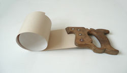 ![]() Curled saw: found object, paper | ![]() Drawing tool: card, graphite, and painted board | ![]() Artemis: plaster | ![]() Cushion: paper, panel pins | ![]() Puzzle: concrete, cloth |